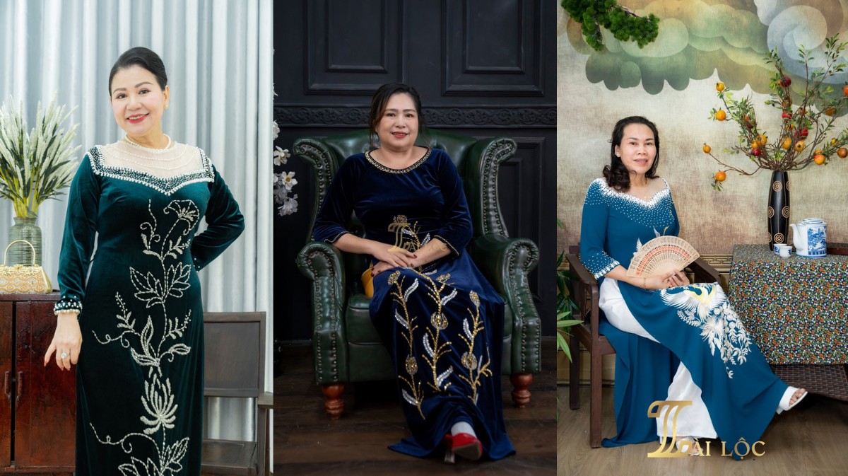 Vải nhung mềm mại, sang trọng và giữ ấm tốt. Áo dài vải nhung rất phù hợp để phụ nữ trung niên mặc trong những dịp lễ Tết hoặc sự kiện quan trọng.